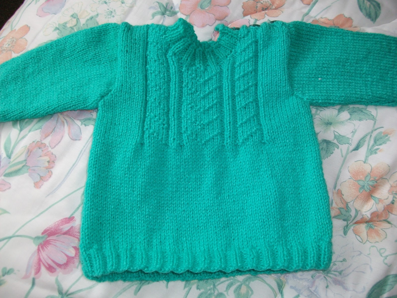I would have made this quite quickly if it hadn't been for the pattern on the bodice, as usual I had to really concentrate and still I made lots of mistakes, so after much pulling out and re knitting I finally finished it. It took me a week because I kept putting off sewing it up. I do like it, it was taken from the woman's weekly knitting magazine. That magazine was such good value I have made so much out of it. This little top should fit a child 12 months. Small things are sooo cute.