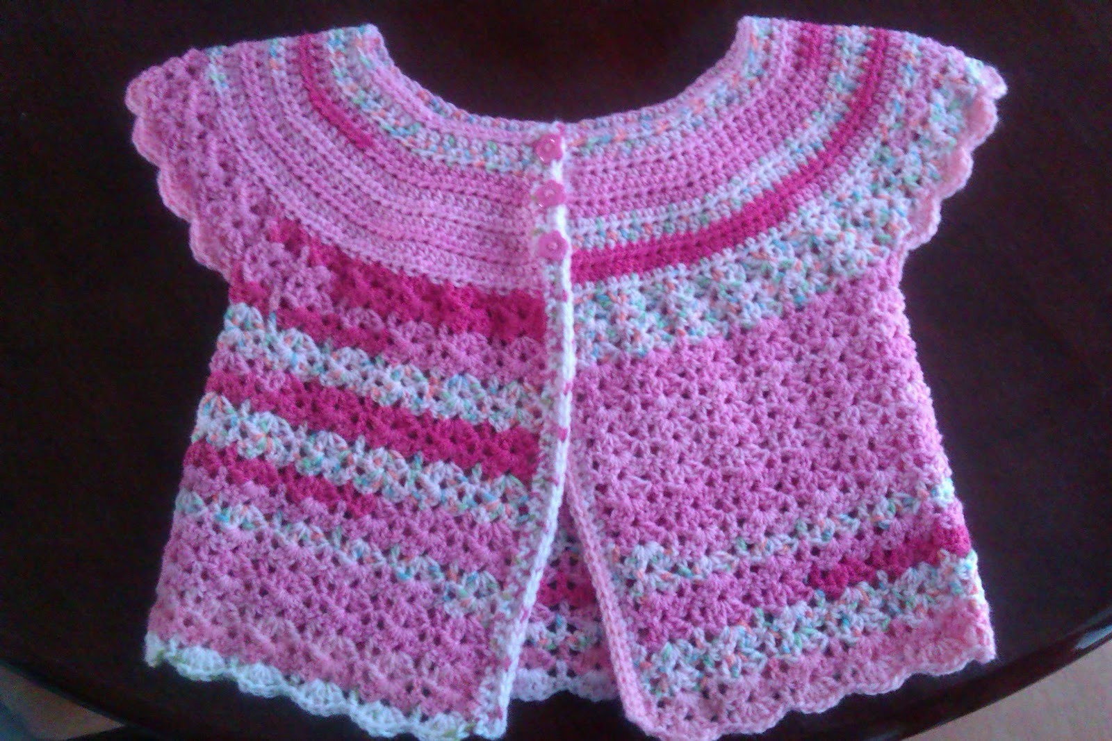 To continue with the Book story, another book I love which was given to me as a birthday present is Little crochet by Linda Permann. I couldn't wait to make something out of it so I started this little jacket on New Years Eve ( I needed a break from making the elephant blanket lol ) and I finished it off on New Years Day. This little cardigan was such a joy to make, made in one piece from the yoke down, a nice easy pattern to follow, I like the way that the self patterning yarn has produced an uneven result, I think that it adds to the charm of the jacket.