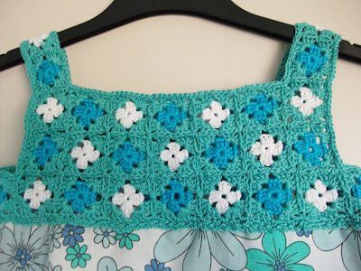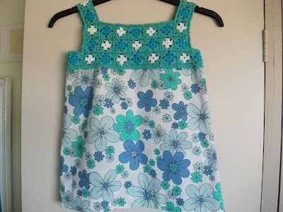 This is another lovely pattern from the book Little crochet by Linda Perman.  I love the concept of combining crochet with knitting and sewing, that's whats great about crochet it's so versatile and can be added to all kinds of things.