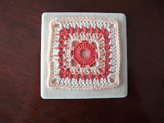 A granny square with a difference.  I kept getting this one wrong and had to pull it back, a couple of time until I got right, here is the finished result, I quite like it. It would be nice to mix these with ordinary granny's to make a cushion cover or blanket.