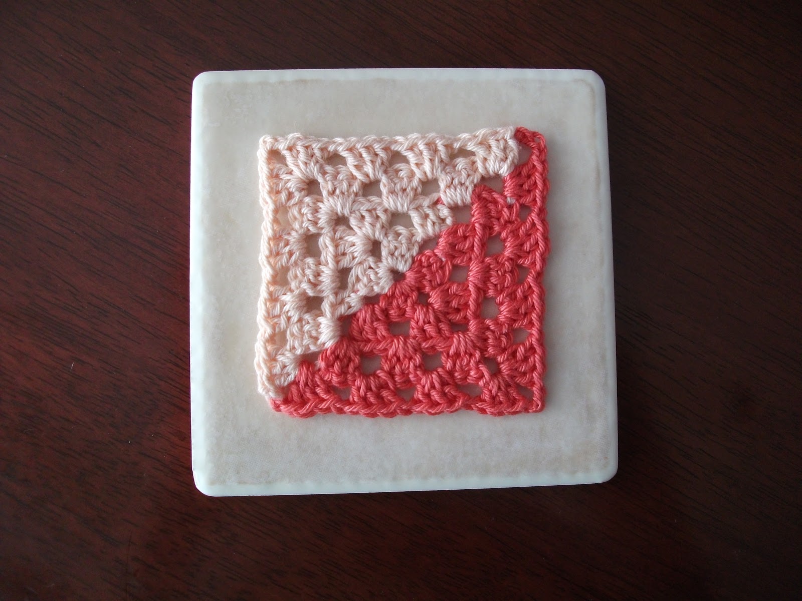 I took 16 squares, then edges them with two rounds of dc in a bright contrasting shade.